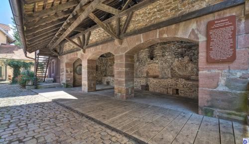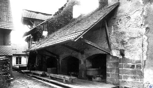 Die »Wäschkuchi« war früher sozusagen ein öffentliches, an die – hier sichtbare – Stadtmauer angelehntes Gebäude mit offenen Arkaden. Hier trafen sich einst die Hausfrauen des Städtles zum gemeinsamen Wäschewaschen. Aus dem Gewerbekanal, der hier vorbeifließt, wurde das Waschwasser entnommen, in eingemauerte Kupferkessel gefüllt und dann mit Holzfeuer erhitzt. Dann wurde die Wäsche in großen Holzzubern auf massiven Holzböcken mit Hilfe von Bürste, Waschbrett, Wäschezange und Schmierseife in anstrengender Handarbeit gereinigt. Zunächst in städtischer Obhut, wurde das Waschhaus dann von einer Pächterin verwaltet. Noch zu Beginn der 1950er-Jahre wurde das Waschhaus genutzt.