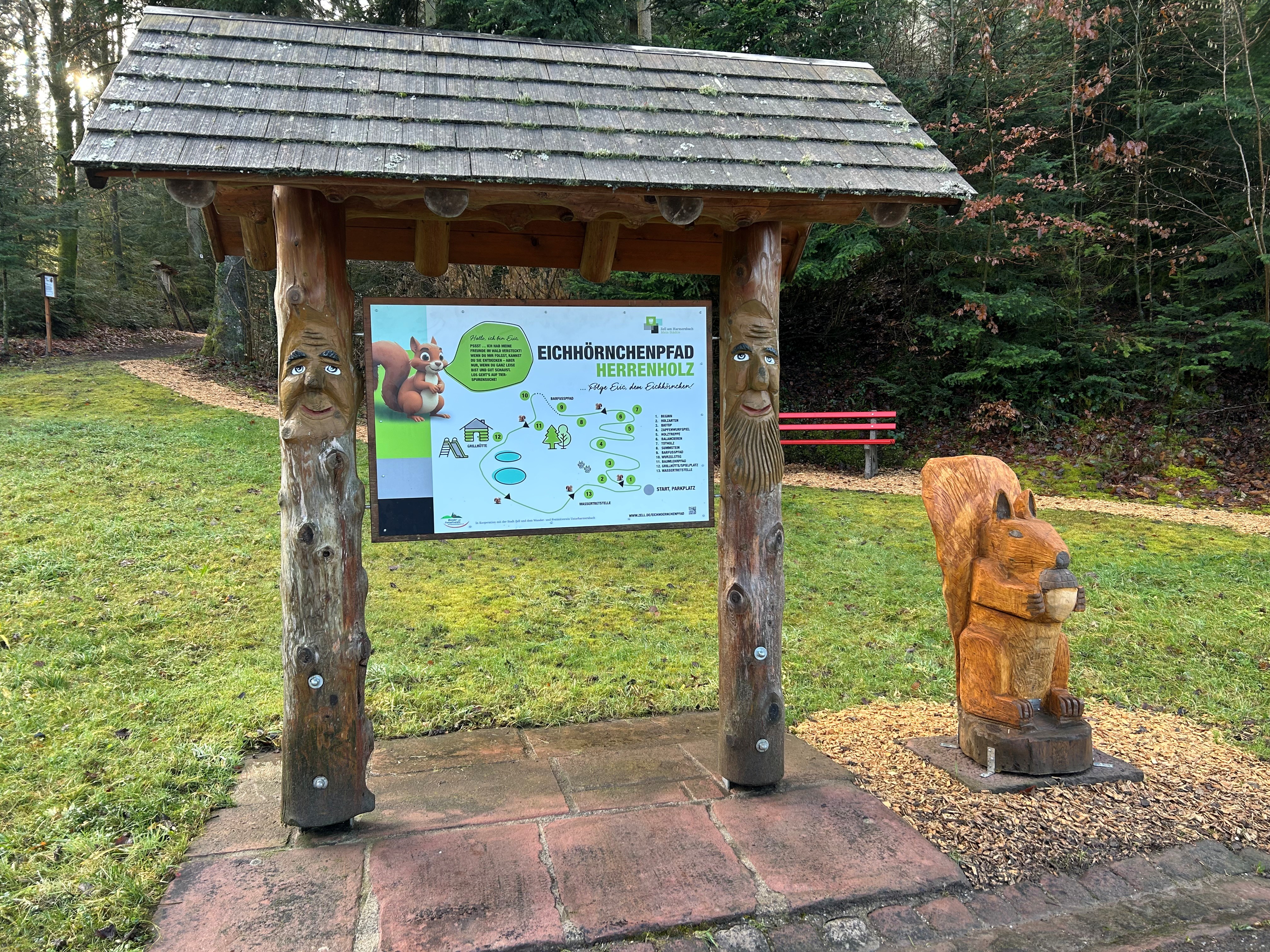 Entdeckt gemeinsam den neu gestalteten Eichhörnchenpfad im Herrenholz bei Zell am Harmersbach! Dank des Engagements des Wander- und Freizeitvereins Unterharmersbach und der Unterstützung von Förster Klaus Pfundstein ist der Pfad jetzt noch spannender und familienfreundlicher geworden.
