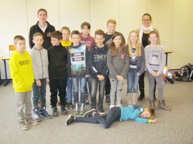 »Was tun im Notfall?« Bei dieser Frage war sich die Gruppe sehr schnell einig: »Notruf!«. Schritt für Schritt erarbeitete sich die Gruppe das richtige Verhalten in einem Notfall. Doch nicht nur dieser Fall wurde durchgespielt, sondern auch die Frage: »Worauf muss ich achten, wenn ich alleine mit dem Fahrrad unterwegs bin?« Christian Armbruster riet den Schülern und Schülerinnen: »Wenn ihr alleine unterwegs seid, sagt vorher zuhause Bescheid, welche Strecke ihr fährt!«