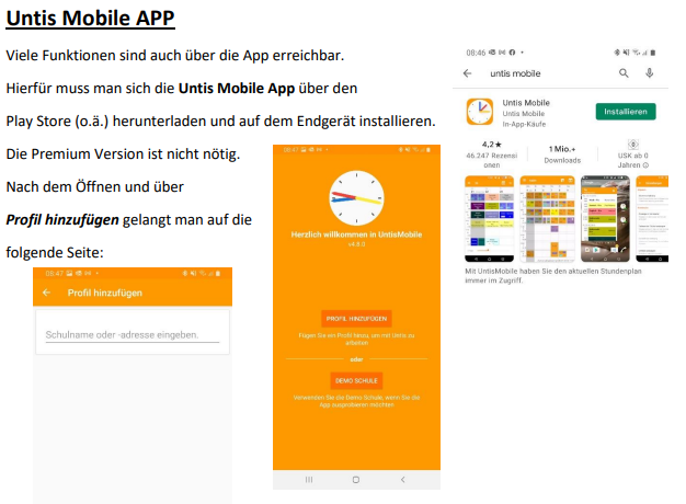 Vor noch nicht allzu langer Zeit wurde der Stundenplan ausschließlich auf Papier veröffentlicht. Mit der Verbreitung des World Wide Web wird diese Art der Veröffentlichung zunehmend durch das elektronische Publizieren ersetzt. Der entscheidende Vorteil dabei: Jeder Schüler sieht tagesaktuell seinen individuellen Stundenplan mit allen anstehenden Stunden, Vertretungsstunden, Raumänderungen und Ausfällen. Kernbestandteil von WebUntis ist auch die kostenlose App „Untis Mobile“, die auf dem Smartphone oder dem Tablet installiert werden kann.