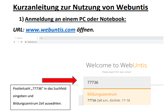 Anmelden kann man sich über einen Browser auf der Seite: www.webuntis.com.