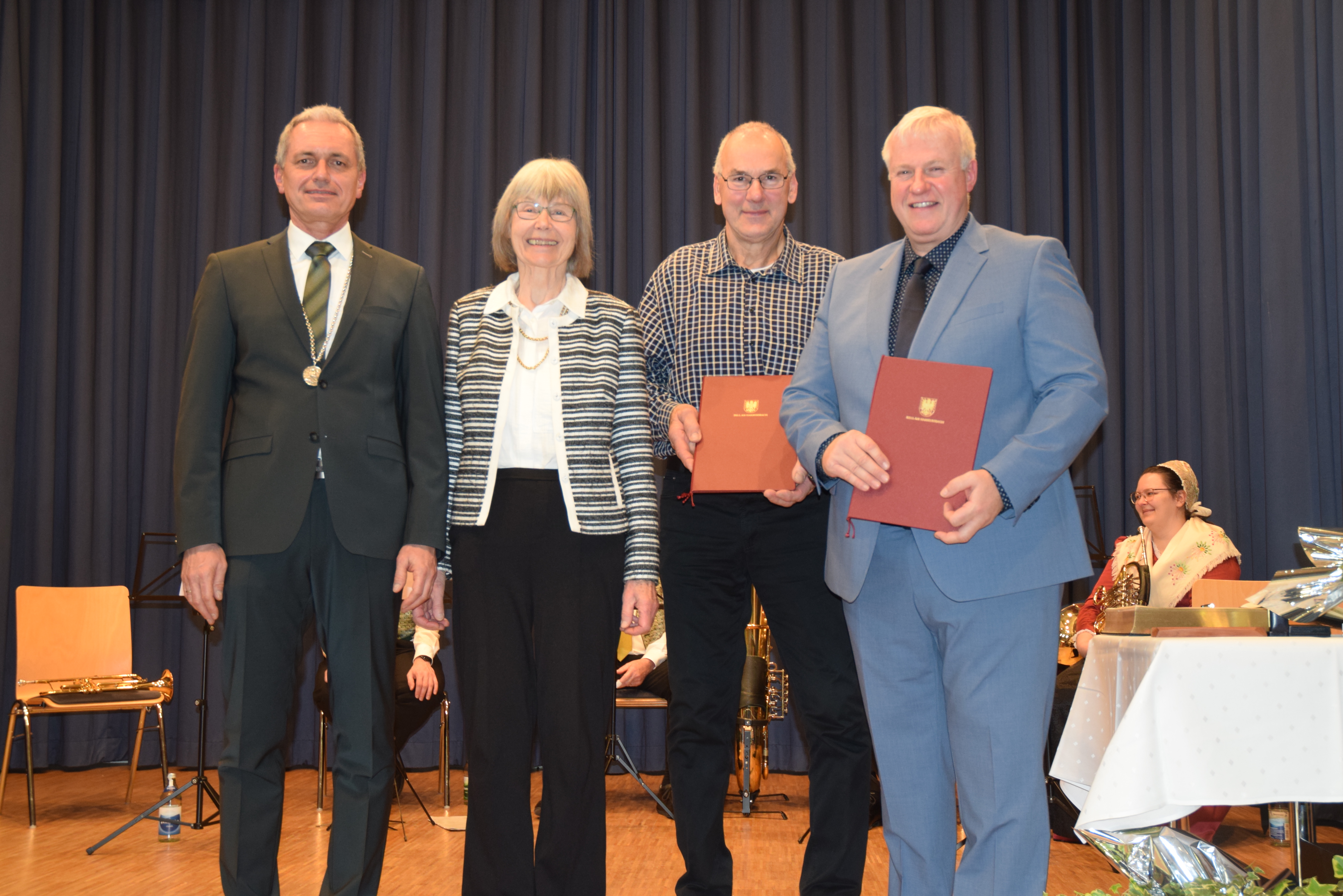 Sozial engagiert Stehenden Applaus gab es dann für die Ärztin Anna Niederberger (81), die mit der Bürgermedaille geehrt wurde. Günter Pfundsteins Laudatio zeigte das breite soziale Engagement von Anna Niederberger, die schon Jahrzehnte in Zell lebt: „Wir ehren ein ehrenamtliches Engagement, das in der Intensität und Dauer in Verbindung mit ihrer Berufung als Ärztin kaum größer sein kann. Sie waren von 2008 bis 2024 Bereitschaftsärztin des DRK-Ortsvereins Zell und waren Mitglied in der Notfallbetreuung. Anna Niederberger war treibende Kraft bei der Gründung einer Selbsthilfegruppe zur Krebsnachsorge, einer Herzsportgruppe, der Demenzberatung, und sie war in vielen Entwicklungsländern bei „German Doctors“ engagiert. Sie sind ein Vorbild für alle, die sich ehrenamtlich im sozialen Bereich engagieren: Ein stiller Engel und Helfer, teils im Hintergrund, aber doch immer präsent“, würdigte Pfundstein. Alle Geehrten trugen sich ins Goldene Buch der Stadt ein, der Empfang wurde von einem Bläser-Quintett umrahmt.