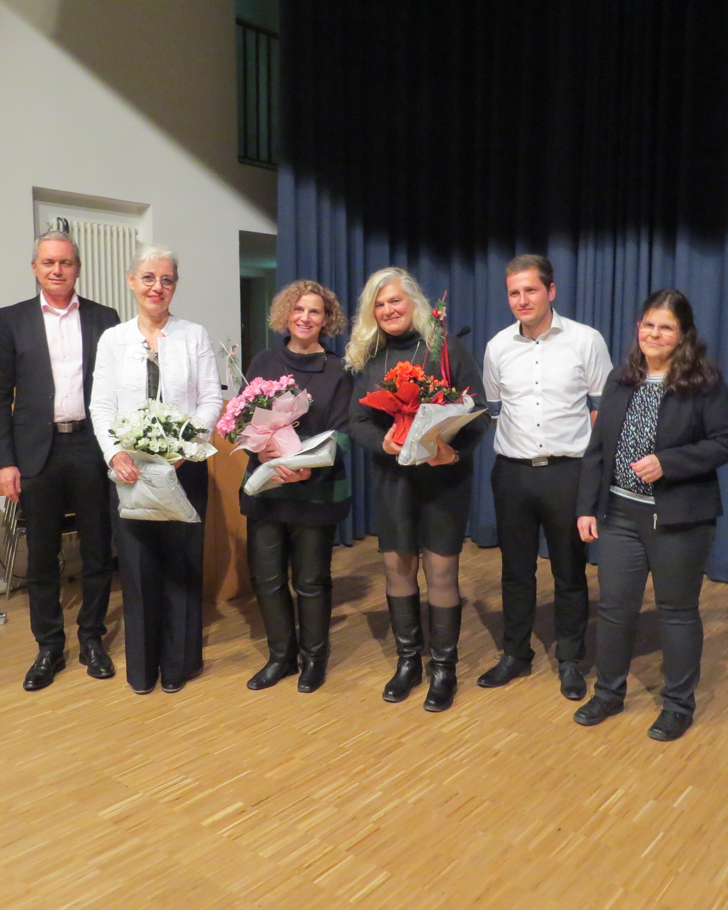 Vier Personen wurden nach einem langen Arbeitsleben in den Ruhestand verabschiedet. Lucia Isenmann hat als Schulsekretärin im Bildungszentrum Ritter-von-Buß gearbeitet. Maria Hiß wurde bereits schon einmal in den Ruhestand verabschiedet. Sie war beim Grundbuchamt angestellt und kehrte dann zurück, um bei der Grundbucheinsichtsstelle auszuhelfen.